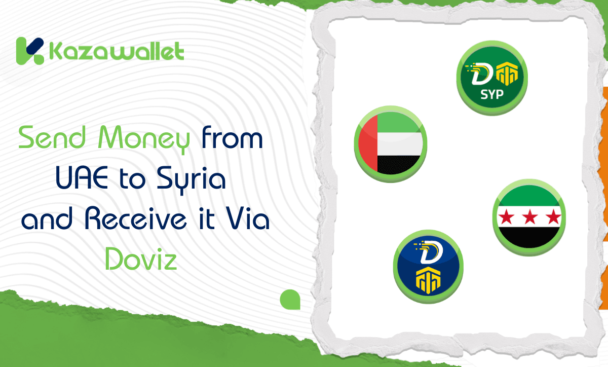This guide explains how you can use Kazawallet to exchange Emirati Dirhams into syrian pound, how to send money from UAE to Syria and receive it from any Doviz company branch.